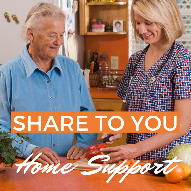 HOME SUPPORT SHARE comes to you for care and support Following 12 months of COVID-19, we are continuing to offer our support in any way we can. That’s why we provide our Home Support service to help you become your healthiest self while staying at home. WE CAN HELP WITH Cleaning and house chores…