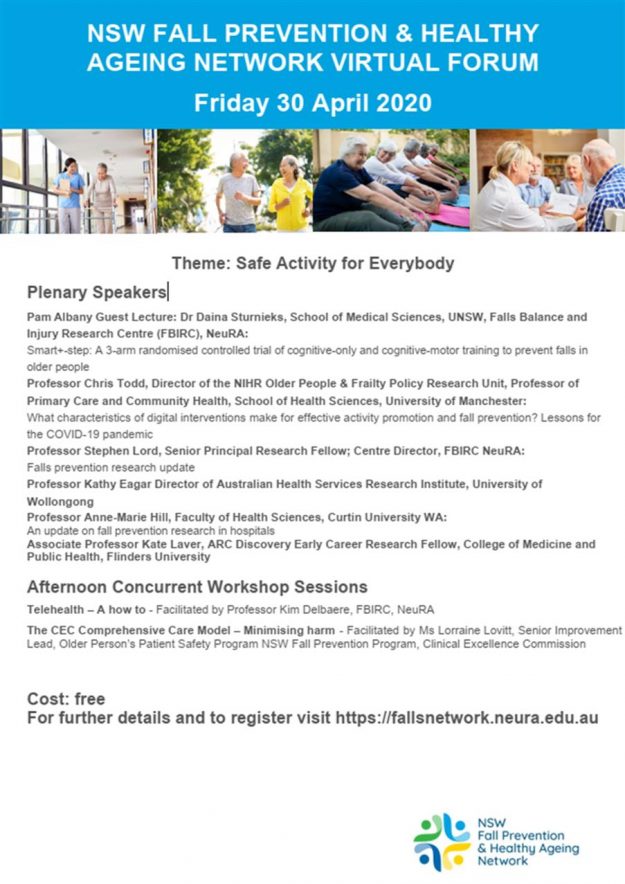 NSW Fall Prevention and Healthy Ageing virtual forum Registrations are now open for the NSW Fall Prevention and Healthy Ageing virtual forum to be held on Friday April 30, 9.30am – 2.50pm. Speaker information, agenda and registration are available here. April Falls resources are also available on our website including posters for different settings and…