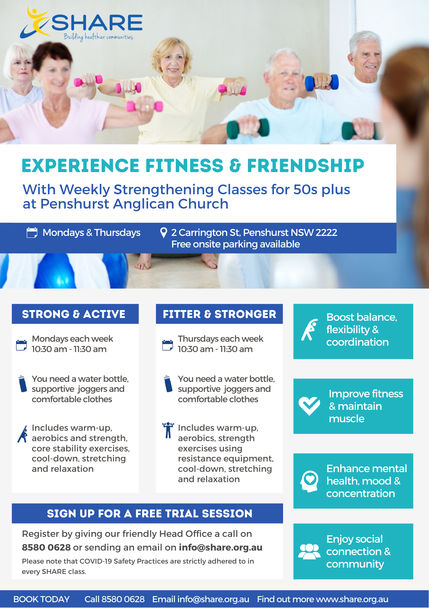 Experience fitness & friendship with weekly strengthening classes for over 50s at Penshurst Anglican Church