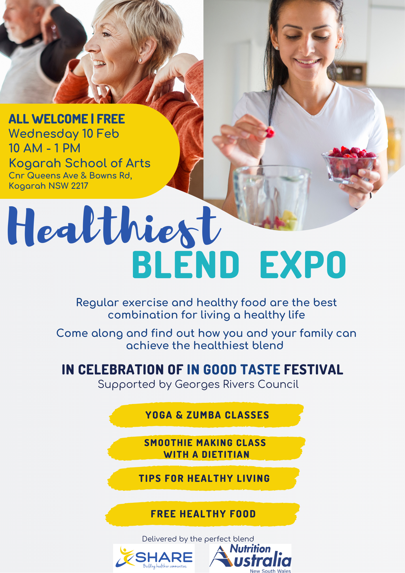 Our Healthiest Blend Expo took place on February 10, 2021 from 10 AM – 1 PM at Kogarah School of Arts